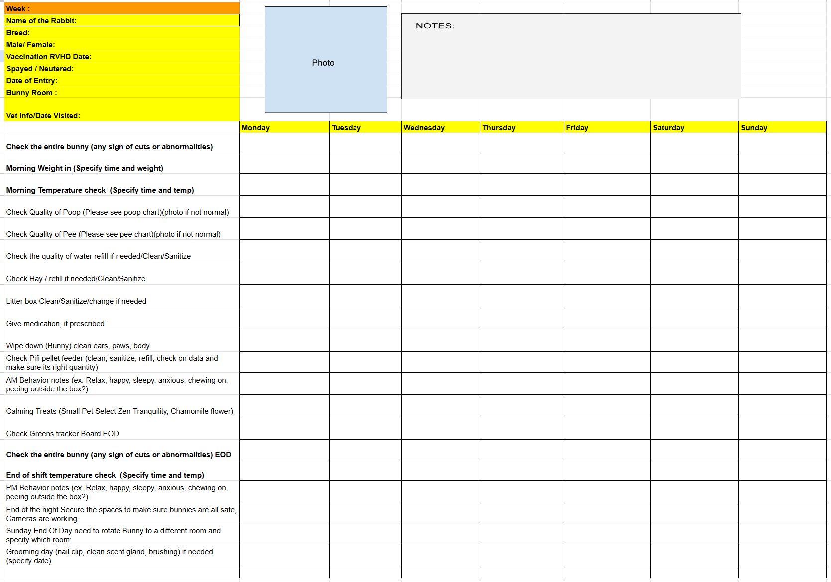 10-12 rabbits will be on-site with 1 to 2 Bun Ambassadors to monitor their behavior, feeding times, food/drink intake, and guest interaction. We cannot guarantee that all the bunnies listed above will always be in the Lounge, as bunny appearances are dependent on their needs (rest, socialization, et cetera). Our Bun Ambassadors will fulfill checklists daily to ensure the well-being of the bunnies; please see below.